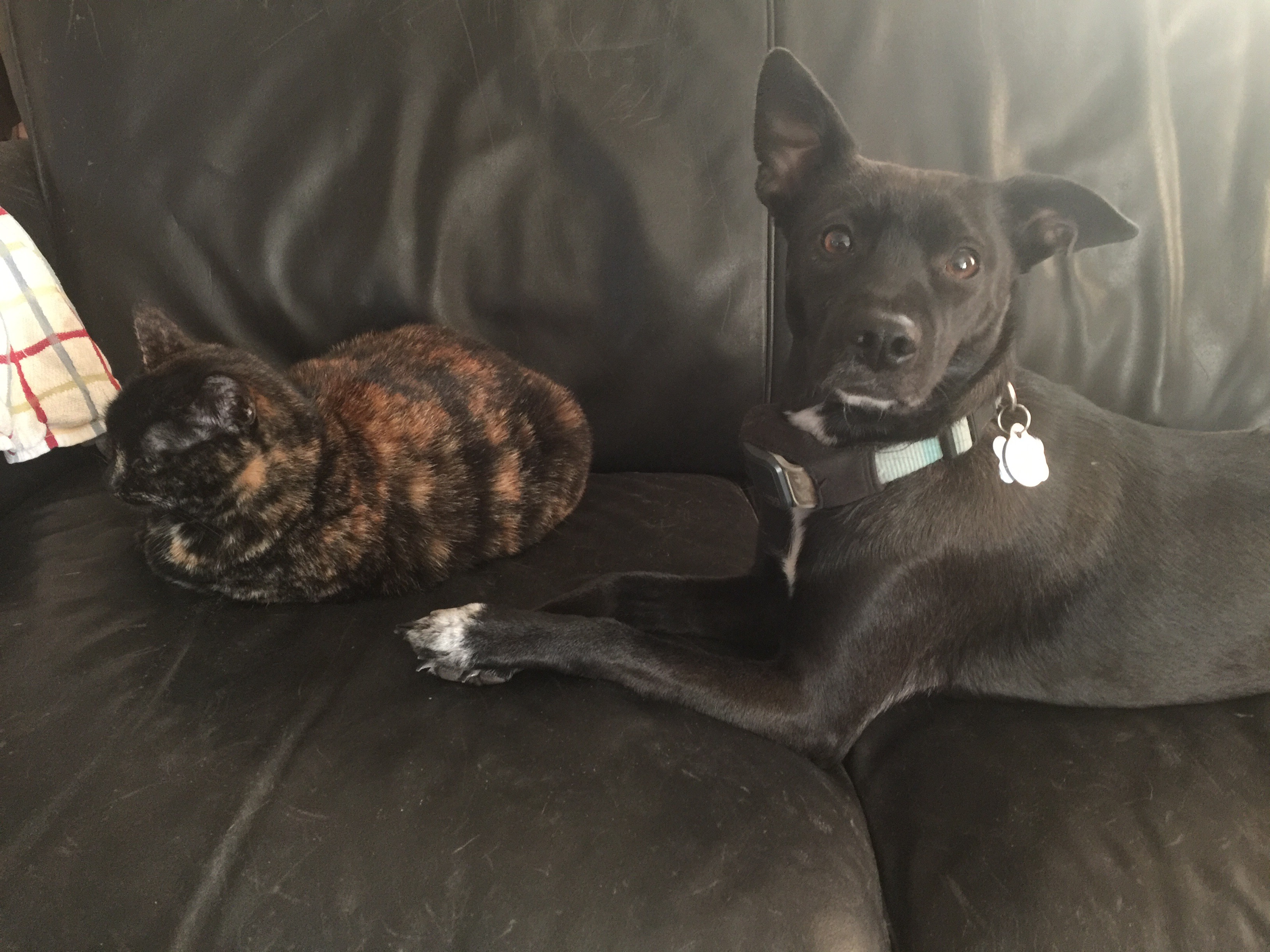 The problem with having a small, observant dog in a houseful of cats is that their behaviors sometimes rub off on him. For example, the cats are alone most of the day with the run of the house, so it’s hard to keep them from being places I don’t want them. Which is probably why I came out one morning to find this: