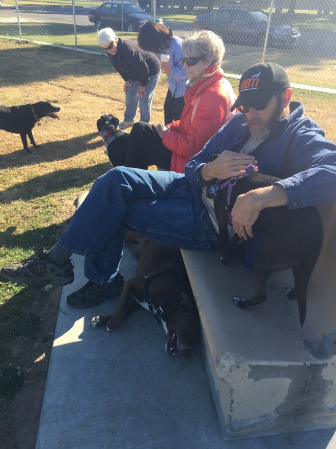 Our friends Karen and Robin have a closet full of dog food and treats. The Dog Park Pack is always VERY interested when it’s “cookie” time.